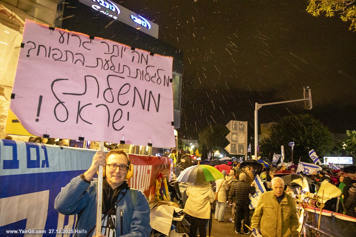 צילומים מהמחאה / ההפגנה נגד ראש הממשלה הנאשם בפלילים בנימין נתניהו וממשלתו הבעייתית 27-12-2025 צומת מרכז חורב, חיפה בשבוע ה-117 לפרוץ מלחמת ה-7 באוקטובר.