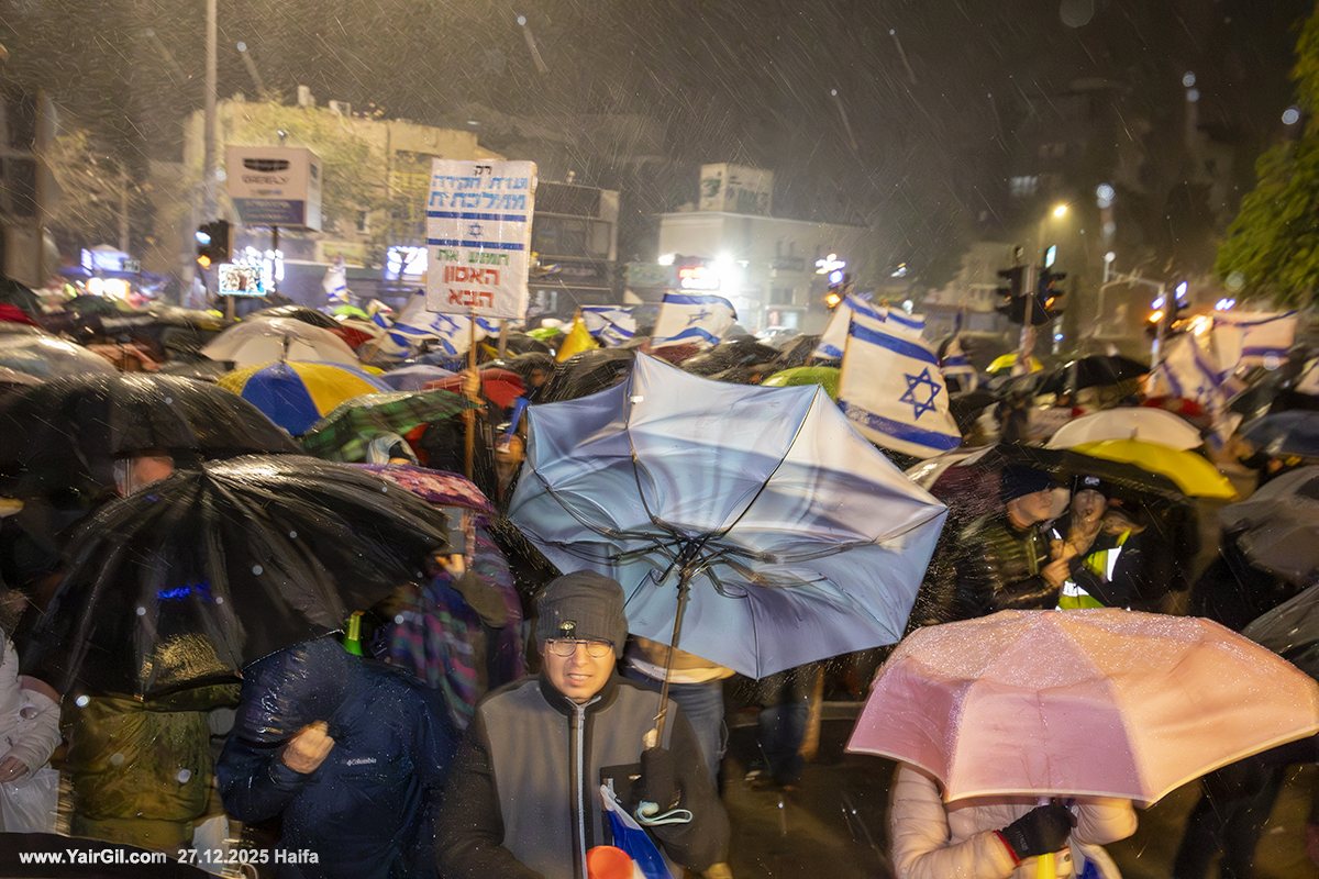 ההפגנה נגד ראש הממשלה הנאשם בפלילים בנימין נתניהו וממשלתו הבעייתית 27-12-2025 בדרך למרכז חורב, חיפה
