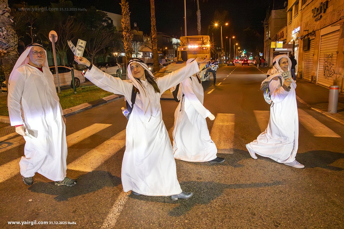 מופע השייח'ים הקטארים במושבה הגרמנית בחיפה 31-12-2025. חילקו דולרים ושוקולדים