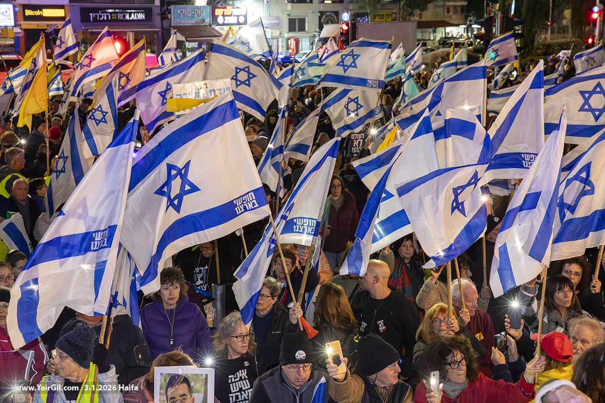 המחאה בחיפה 25.10.2025 – להשבת החטופים-החללים, שראש הממשלה בנימין נתניהו יקח אחריות ושממשלתו תימוג, ושתכניות חלופיות לשיקום המדינה יתקדמו