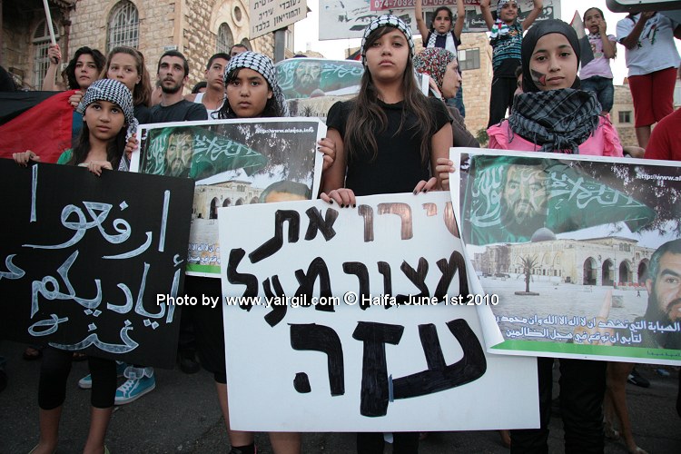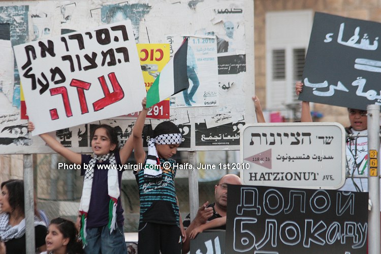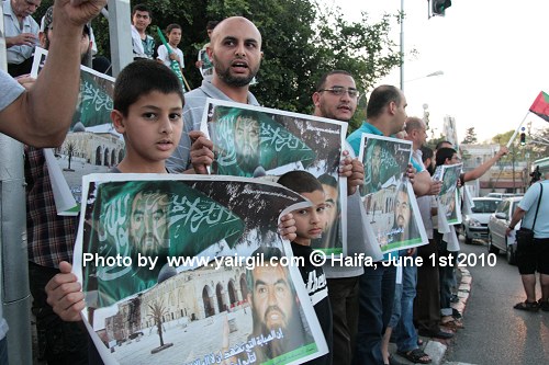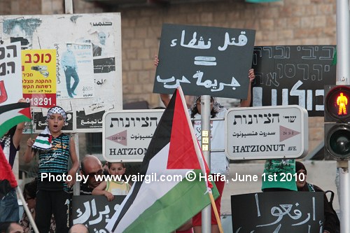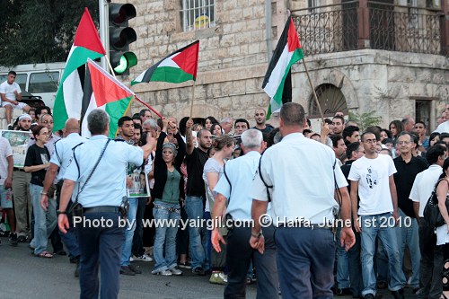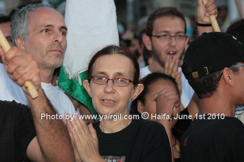 משמרת מחאה בחיפה 1.6.2010ההפגנה התקיימה ליד "בית הגפן", בחיפה, ובההובעה מחאה כלפי התנהגות ממשלת ישראל כלפי המשט לעזה והתנגדות להמשך המצור צילומים -יאיר גיל Photos by Yair Gil, © Haifa, May 31 2010 Demonstration in Solidarity with the Free Gaza Flotilla, Near Beit Hagefen, on Hatzionot Ave. |