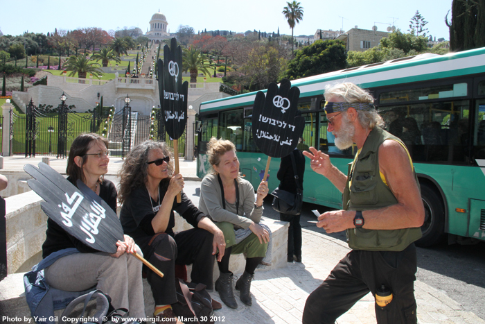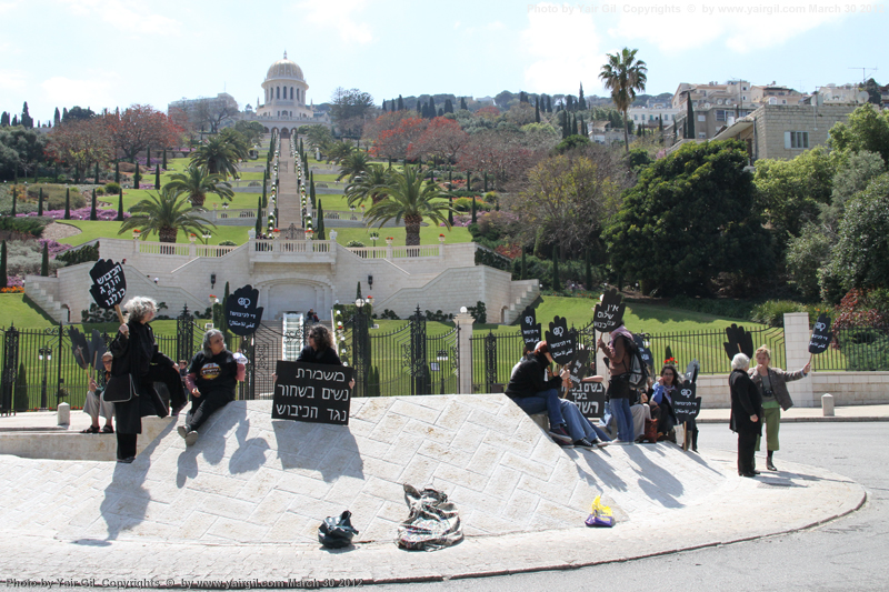 נשים בשחור בגשם - 17.2.2012 העצומה לחישמול ושיקוע הרכבת - דף העצומה של החברה להגנת הטבע אנדרטה ומוזיאון 'יד לניצול' - יום השואה הבינלאומי בחיפה 27.3.2012 "בתום כל מלחמה מוכרח מישהו לנקות" ויסלבה שימבורסקה ככה לא נראית ערווה - חיפה 11.11.11 מרכז זיו ב 11:00תערוכת הזווית החיפאית - על מחאת האהלים - המחאה החברתית של קיץ בחיפה 2011 |