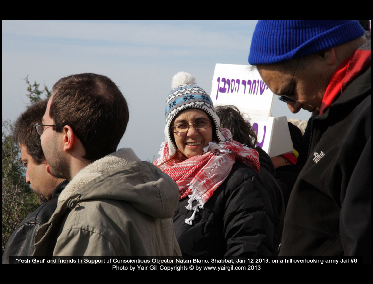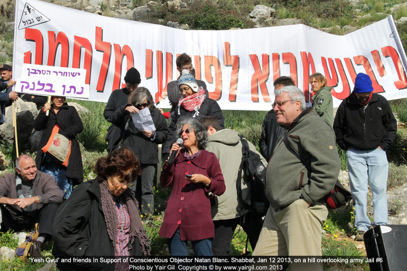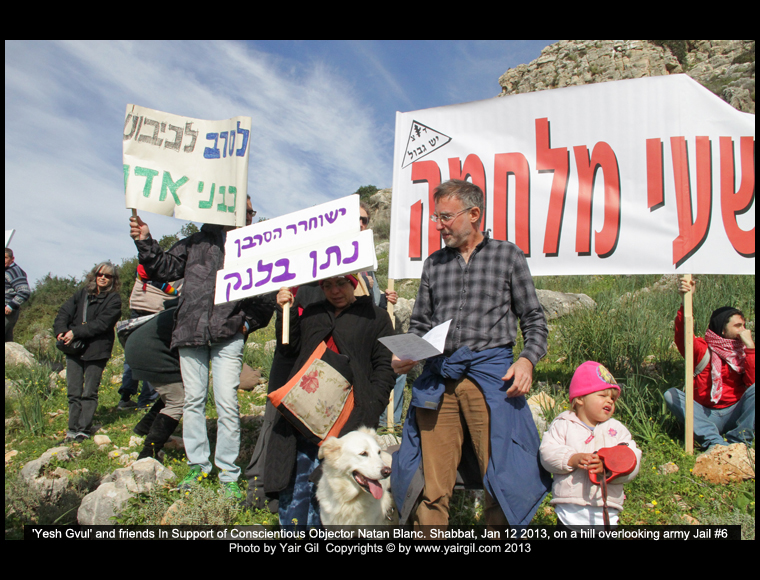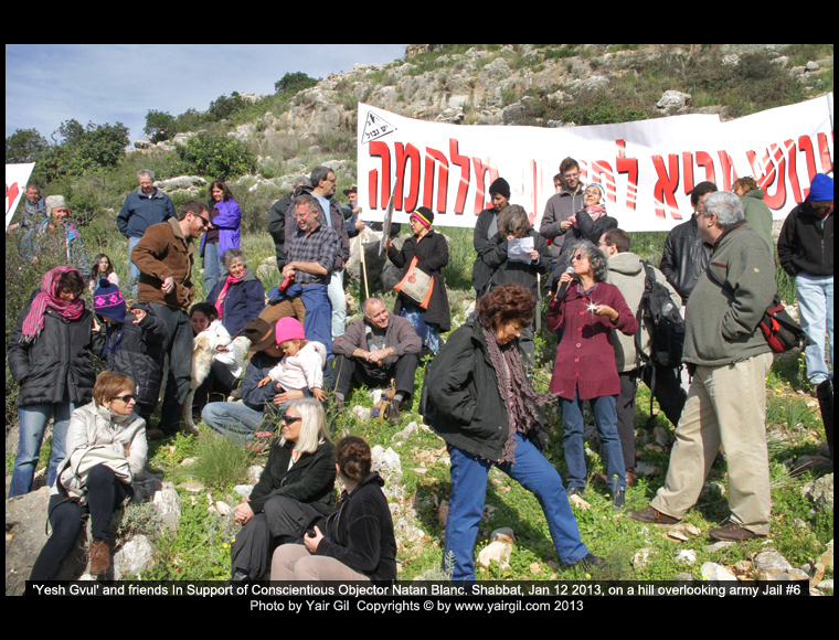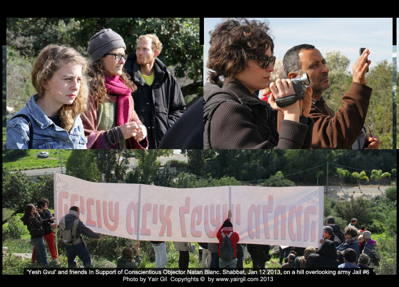 יש גבול על הגבעה - משמרת תמיכה בסרבן המצפון הכלוא בכלא 6 מול כלא שש - שבת 12.1.2013 12:30 A Refusenik Support Rally in Atlit, jan 12 2013 English In Support of Conscientious Objector Natan Blanc (more in English and more and more in French) |
