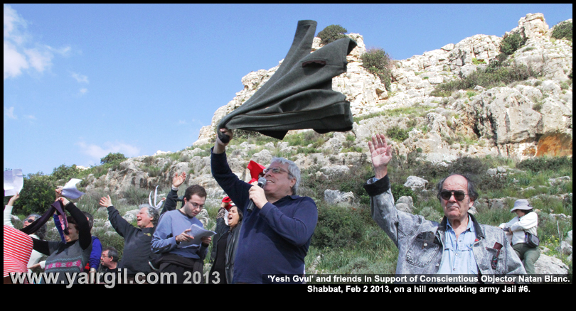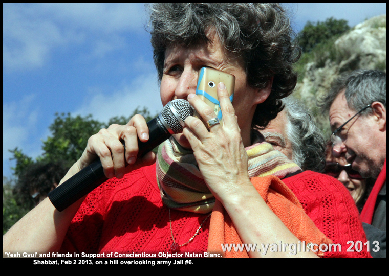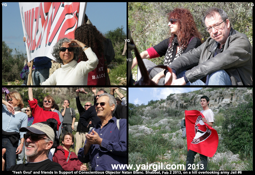 יש גבול על הגבעה - משמרת תמיכה בסרבן המצפון הכלוא בכלא 6 מול כלא שש - שבת 2.2.2013 12:30 A Refusenik Support Rally in Atlit, Feb 2 2013 English (more in English and more and more in French) |