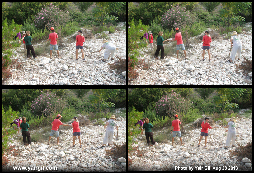 הוועדה נתקלה במתנדבים שעסקו בסיקול אבנים שנסחפו לערוץ הנחל