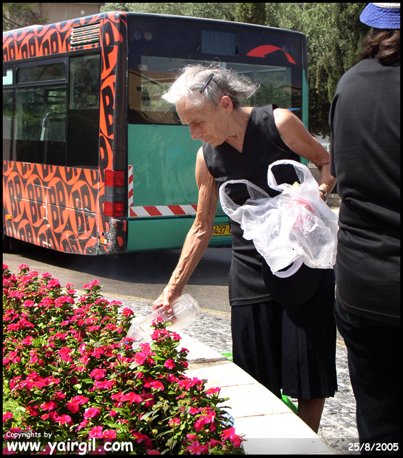 סטלה משקה את הפרחים בכיכר. 25.8.2005 :