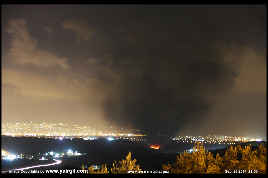שריפה במזרח עמק זבולון שבמפרץ חיפה: עשן כבד היתמר למחשכי הליל 26.9.2014