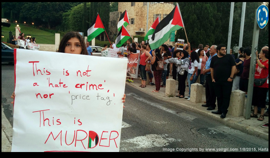 Hirak Haifa published an invitation for the protest (31/7/2015): The crimes of the Israeli Occupation and its settlers know no limit.