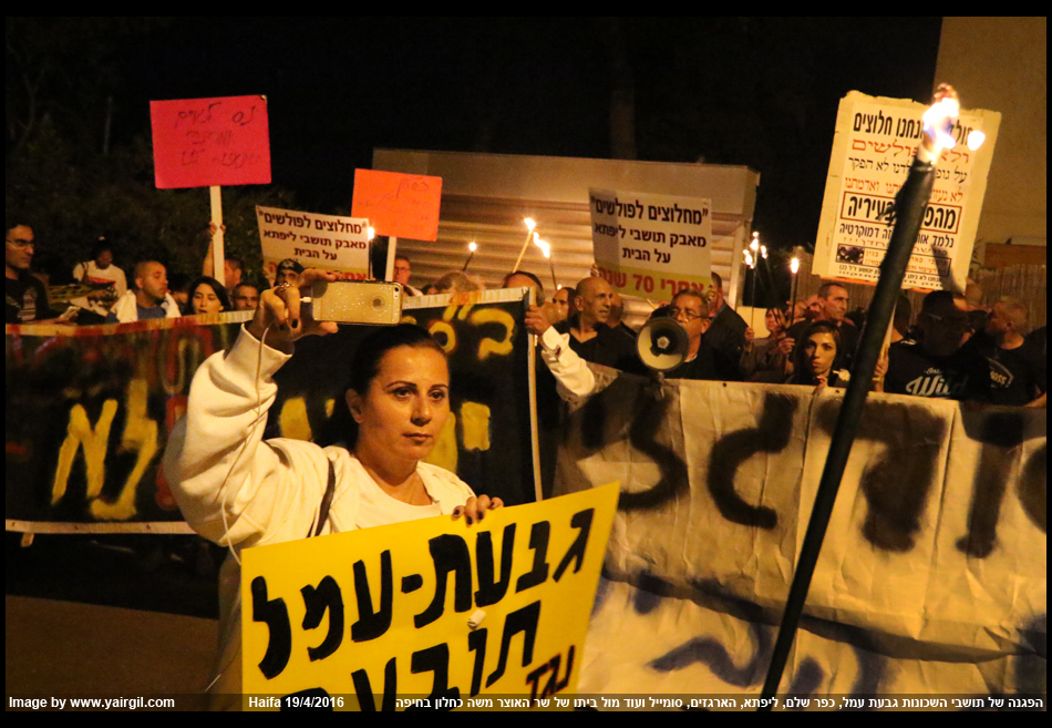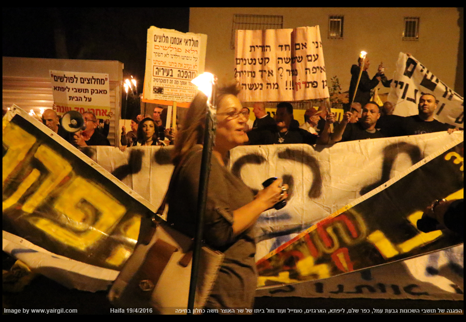 עם אבוקות דולקות מול ביתו של שר האוצר בחיפה