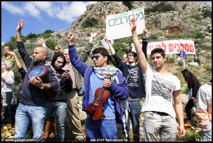 מול כלא שש, על ההר, ליד עתלית, שבת 15.3.2014 עומר סעד נכלא בפעם השניה בגין סרובו לקחת חלק בכיבוש ובדיכוי 4/1/2014