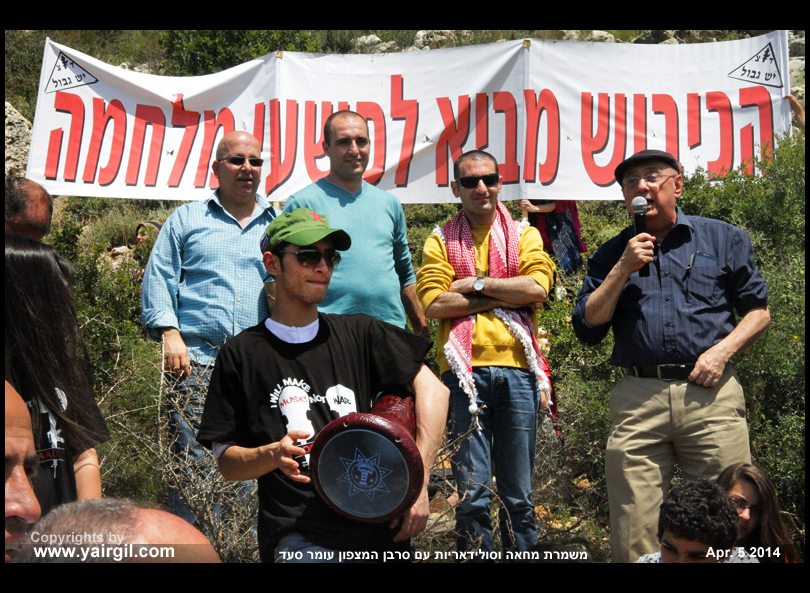 משמרת מחאה וסולידאריות עם סרבן המצפון עומר סעד. בצילום סגן ראש עיריית חיפה ד"ר סוהיל אסעד נושא דברים 5.4.2014