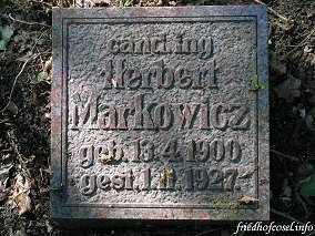 The gravestone of Herbert Markowicz, in The Urn Field, Jewish Cemetery, Wroclaw, Poland. Photo by Kasia Nocek © 2007