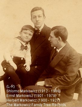 Children of Minka Ludwig Markowicz: (left right) Shlomo Markowicz (1906 - 1989) Ernst Markowicz (1901-1979) Herbert Markowicz (1900 - 1927) The Markowicz Family Records 2007 Picture: c.1917