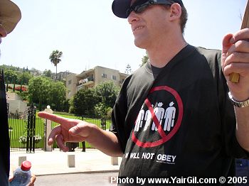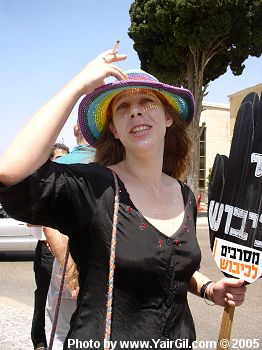 לצבעים אחרים שהיו דומיננטיים במשך היום ובתקופה האחרונה: (הקליקו על התמונה) נער ונערה מחלקים סרטים לתומכים בנסיגה מרצועת עזה (או למתנגדים) 22.7.2005 |