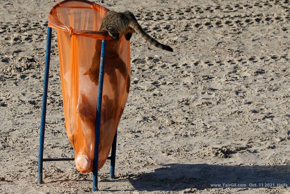 חתולת אשפתות (מסיפור אחר) בתמרון על שפת הים. חיפה 2022